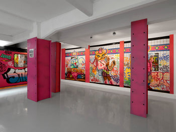 The exhibition features a curated selection of original works by Lady Pink, including new commissions alongside archival pieces, sketches, and ephemera from her early career.