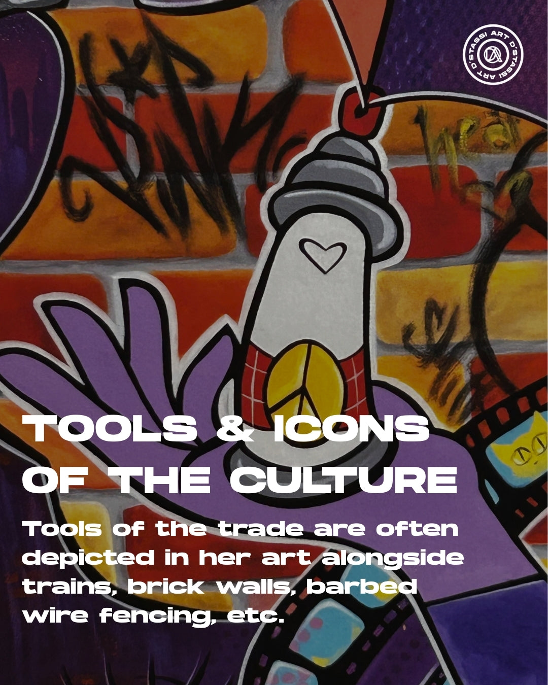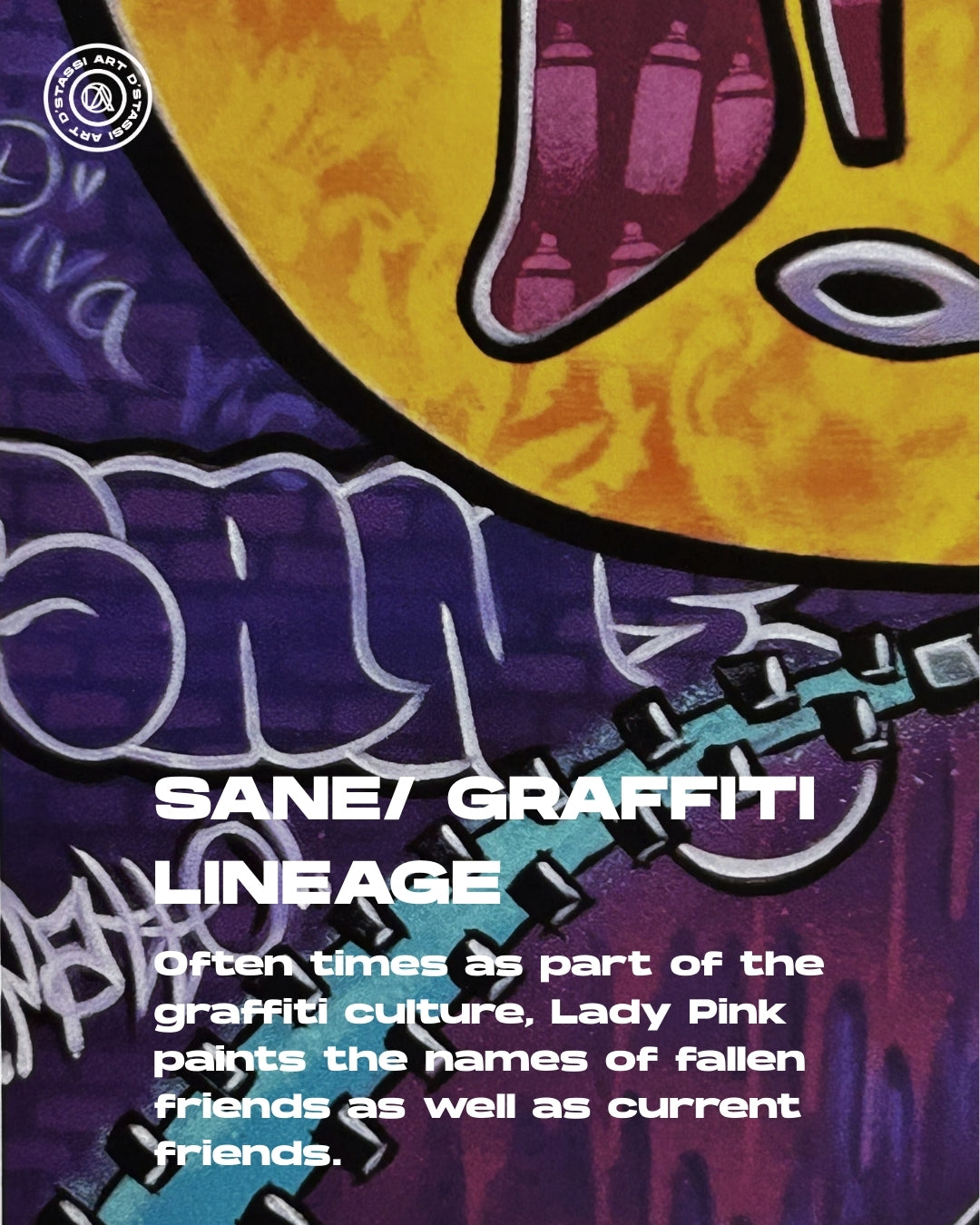 Graffiti: Her Story reflects Lady Pink’s role in shaping the visual language of New York graffiti, bringing together themes of authorship, visibility, and female presence within the movement.